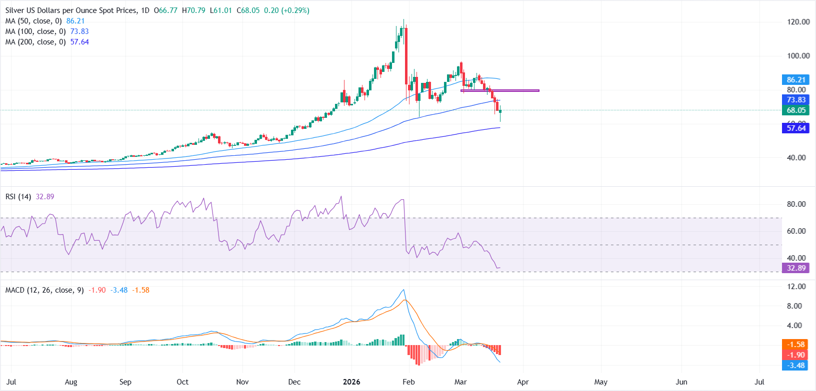 Silver (XAG/USD) stages a rebound on Monday after briefly slipping to year-to-date lows earlier in the Asian trading session, as traders digest conflicting headlines surrounding geopolitical tensions linked to the US-Israel war with Iran. At the time of writing, XAG/USD trades near $68.00, recovering from an intraday low around $61.01, its weakest level since December 2025.